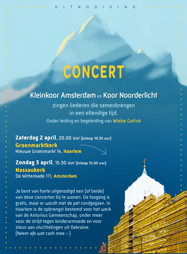 Eindelijk weer!, benefietconcert voor Oekraïne en tegen kinderarmoede. Samen met Kleinkoor Amsterdam |